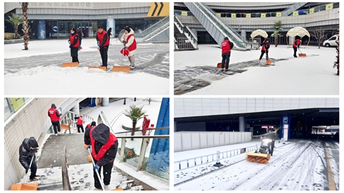 安居科技公司第一時間啟動防寒防凍應急預案。城發(fā)美寓物業(yè)集中清理園區(qū)道路及公共區(qū)域積雪,保障通行;城發(fā)服務連夜補備物資、排查風險,凌晨四點開展除雪防滑作業(yè);中閥科技大廈裝修項目儲備保溫物資,對管道、機具等覆蓋包裹,多措并舉守護施工安全。